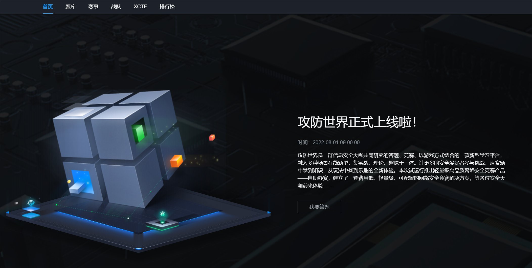 2022年8月1日,网安在线能力提升平台——攻防世界正式改版上线。