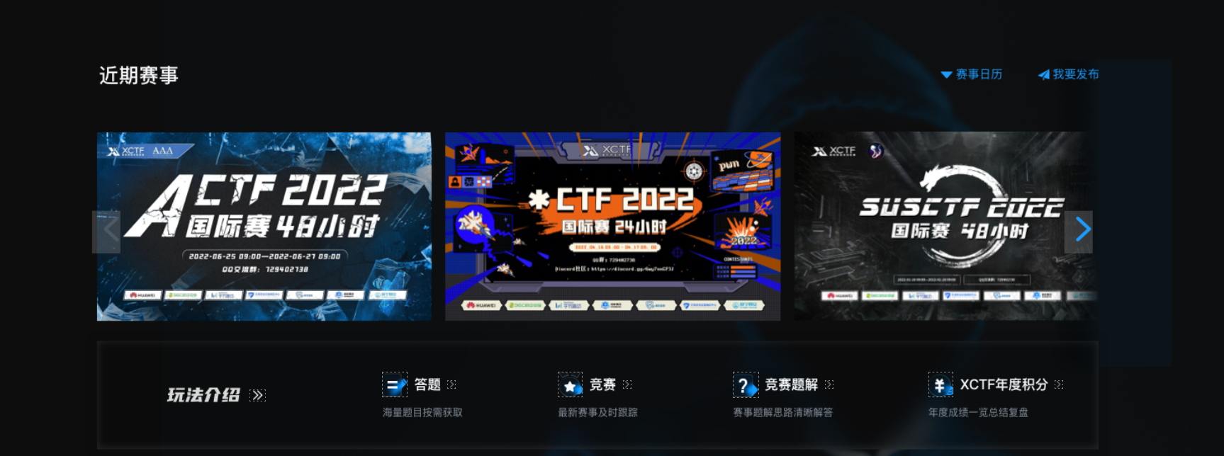 此次改版,攻防世界接入了XCTF国际联赛官方交流平台:XCTF社区板块,用户可第一时间掌握XCTF国际联赛相关动态。平台同时还囊括了众多其他赛事资讯,可为用户提供最多、最全的赛事日历。除此之外,平台也支持用户分享赛事信息、上传解题思路和发布技术文章,鼓励网络安全技术爱好者之间切磋交流、共同成长。