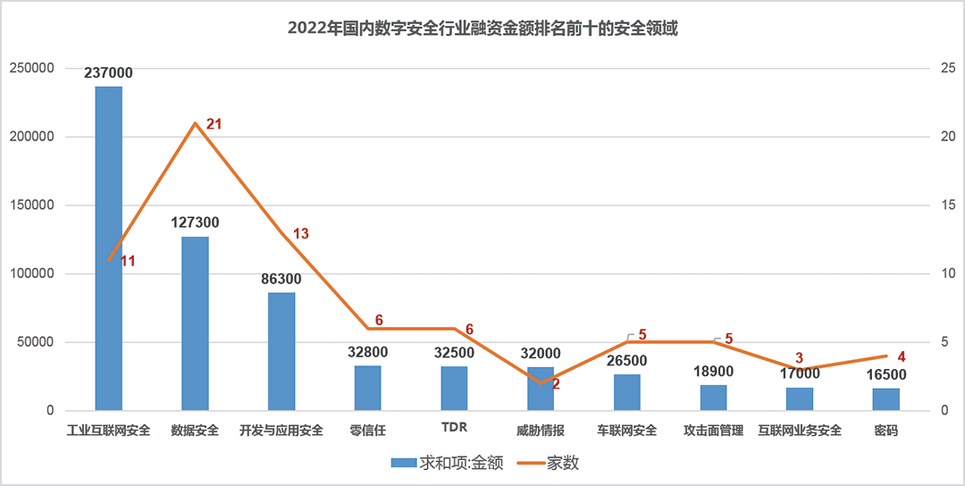 图44 2022年国内数字安全行业融资金额排名前十的安全领域