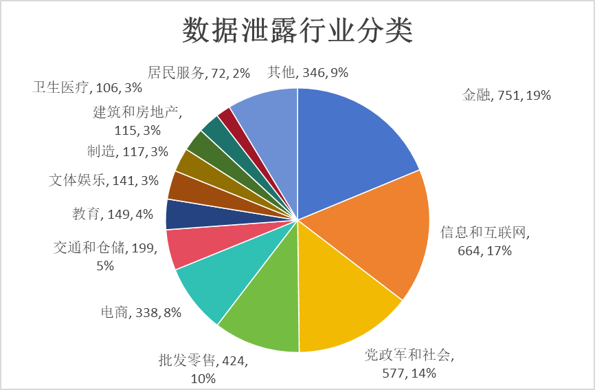 4月份行业属性数据占泄露数据总量约91%左右,泄露的行业数据主要包括金融行业、信息和互联网行业、党政军与社会、批发零售业、电商行业等。9%左右的泄露数据无明显行业属性,包括邮箱密码二要素数据、无明显泄露源的公民个人信息数据、批量的企业工商数据等。详情如下图所示: