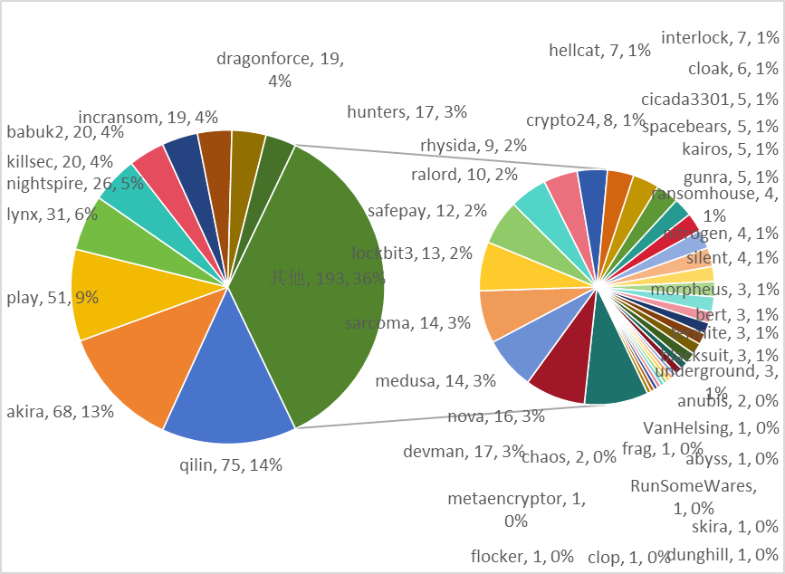 已经介绍过的黑客组织有:Lockbit3,Royal,Play,Rhysida,Alphv,8base,Hunters International、BianLian、Akira、Cactus、Abyss-Data、Black Suit、Arcus Media、space bear、killsec、fog、Funksec、Babuk-Bjorka、Hellcat、Babuk2如需了解请翻阅往期报告。