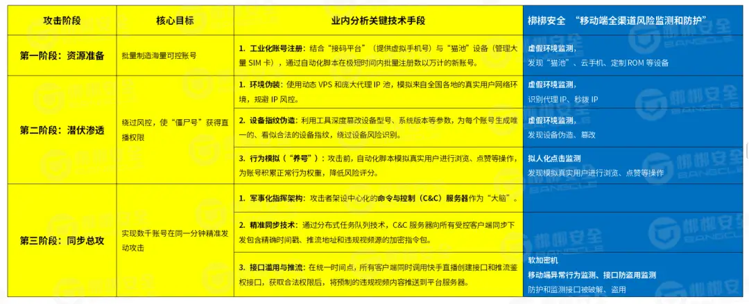 当前,国内短视频直播领域的头部平台,具备专业的“人工+AI”双重审核机制与实时封禁能力。然而在本次高度组织化、技术化的协同攻击面前,其防御体系仍显被动,暴露出当前企业在应对新型黑灰产系统攻击时的共性挑战与防御瓶颈。